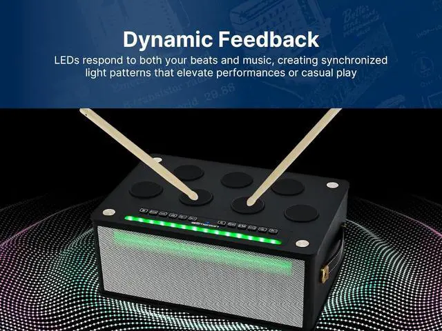 Play & create music anywhere 7 interactive drum pads let you jam along with your favorite tracks or create custom beats using your hands or the included drumsticks.
