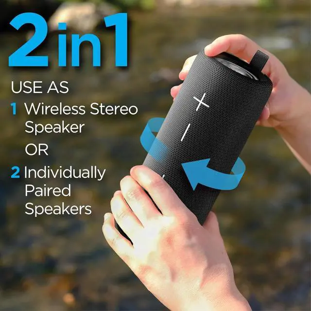 Wireless Stereo Option: Play music as one speaker, or twist apart and use as two paired speakers for an immersive sound experience.