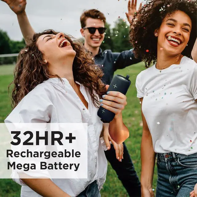 Portable Speaker: Rechargeable battery provides up to 32 hours of continuous play. Includes a carry loop for easy portability.