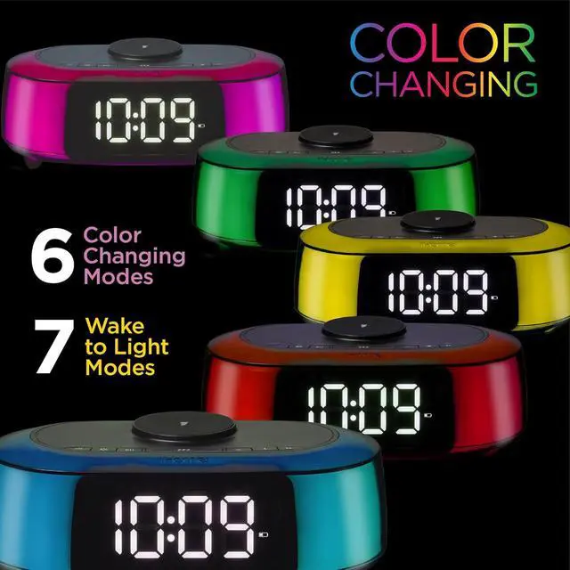 Bluetooth Speaker and LED Lighting: Connect your smartphone or tablet via Bluetooth and stream your favorite audio content. Choose from 6 vibrant color changing modes and 7 wake-to-light color modes.