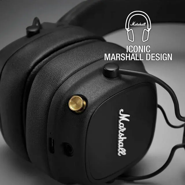 Take your music listening experience to the next level with this Marshall bundle. It includes the Middleton Portable Bluetooth Speaker that delivers superior 360° sound and up to 20+ hours of playtime. With IP67 rating, it is built to withstand the outdoors. Pair it with the iconic Major IV headphones that provide a rich Marshall sound for over 80 hours on a single charge. The Middleton speaker utilizes True Stereophonic technology to fill any space with immersive, multi-directional sound. Adjust bass, treble and volume on the go, or use the app for wireless control. An outdoor-friendly durable design with 55% recycled plastic can withstand mud and rain. Recharge fully in just 4.5 hours. Connect multiple Middleton speakers for a colossal group listening experience. Complementing the speaker, the Major IV headphones last over 3 days with upgraded comfort. Custom-tuned 40mm dynamic drivers pump out smooth, well-balanced sound with thumping bass and brilliant highs. Enjoy key Marshall design details like the tactile control knob and script logo on the durable vinyl. Conveniences like wireless charging, an inline mic and foldable design make these the ultimate headphones for life on the move. With the Middleton speaker and Major IV headphones, this Marshall bundle brings together powerful audio performance, iconic style and improved usability for an unmatched listening experience wherever your music takes you.