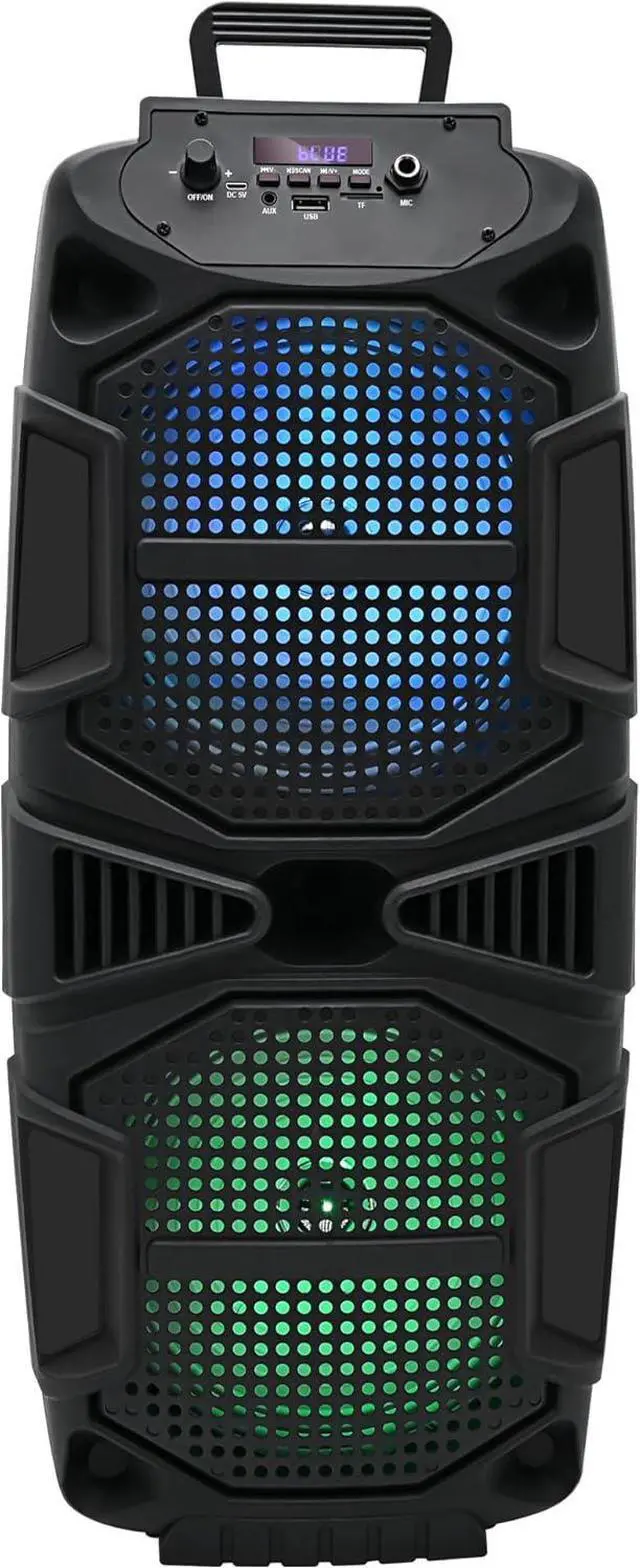 400-Watt Rechargeable Bluetooth Speaker - Dual 8" Colourful LED Woofers, USB Mode, SD Card, FM Radio, Mic Input for Perfect On-The-Go Karaoke, Party Nights by Technical Pro