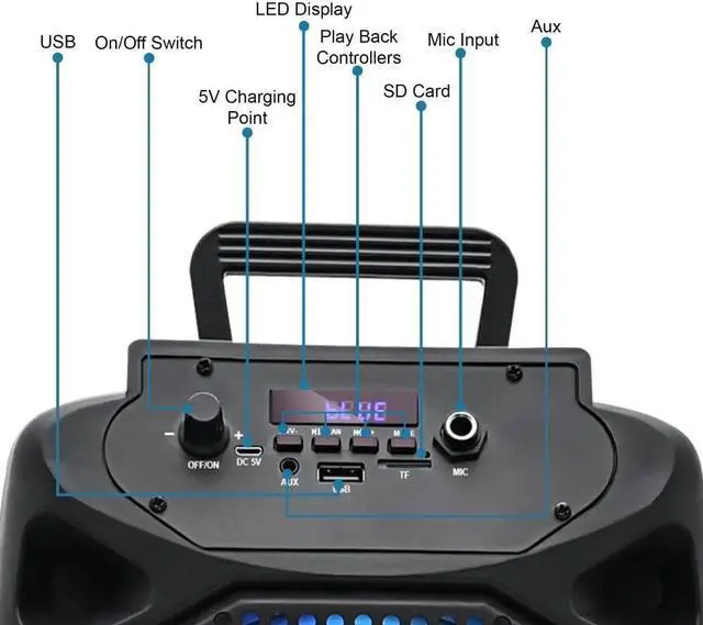 Enjoy seamless playback from Bluetooth, USB, SD Card, and FM Radio inputs, streaming music wirelessly, playing music from USB/TF card/ SD Card, and tuning in to FM Radio, all offering unmatched convenience.