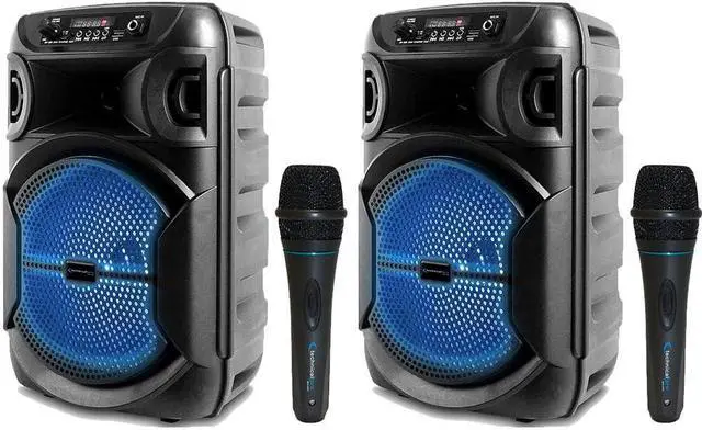 SET OF 2 SPEAKERS AND 2 MICROPHONES: Technical Pro MK75 Karaoke DJ Wired Microphone Mic w/ 10 ft. XLR to 1/4 Cable. Directional: Cardioid