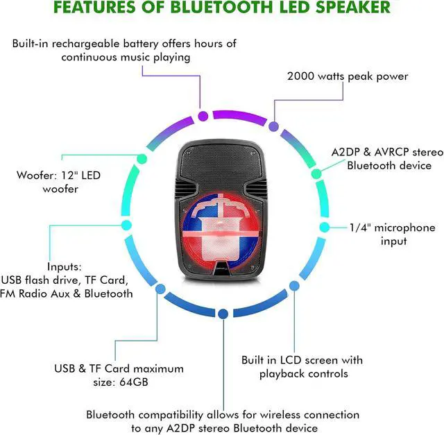 FLASHING DJ LIGHTS: This bluetooth party speaker with lights features multi-color flashing disco LED party lights. True wireless stereo system adds life to any occasion, great for patio parties & night gatherings when colorful presence is noticeable.