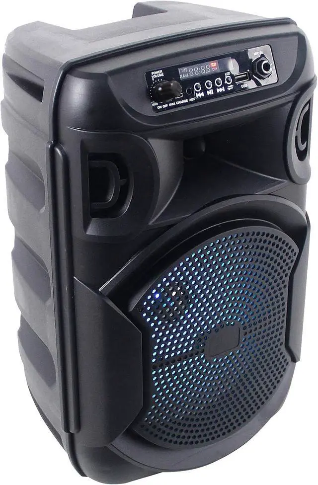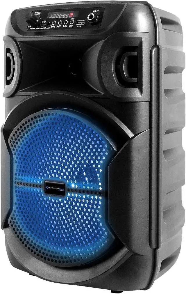Package Includes: (2) Technical Pro BOOM8 Portable Rechargeable 8" LED Speaker w/Bluetooth/USB. 1000 watts peak power. Built-in rechargeable battery offers hours of continuous music playing. A2DP & AVRCP stereo Bluetooth device