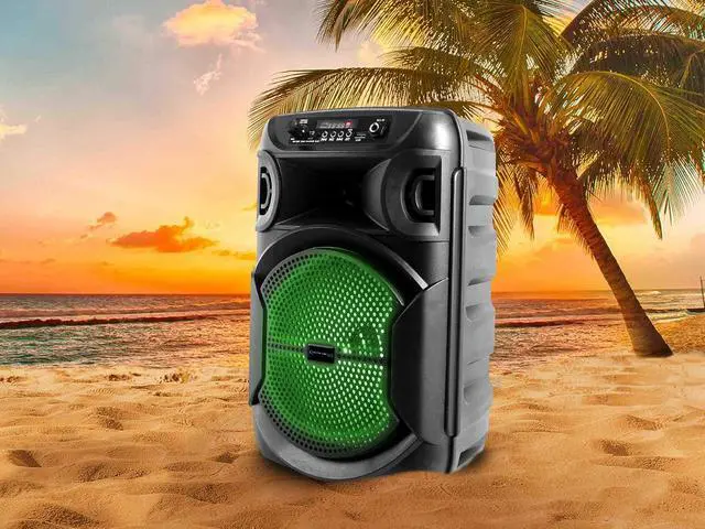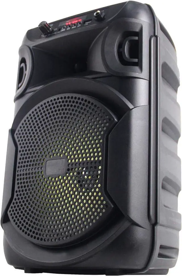 TWS (True Wirelss Stereo), One Bluetooth device can connect with 2 speakers at same time for True Wireless Stereo Sound. ABS Plastic Face & Rugged perforated grill for extra protection. Woofer: 8'' LED woofer. LED Power Switch. Inputs: USB flash drive, FM Radio AUX & Bluetooth
