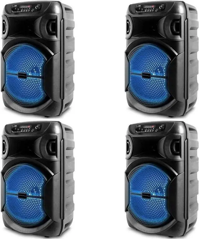ABS Plastic Face & Rugged perforated grill for extra protection, Woofer: 8'' LED woofer, LED Power Switch, Inputs: USB flash drive, FM Radio AUX & Bluetooth