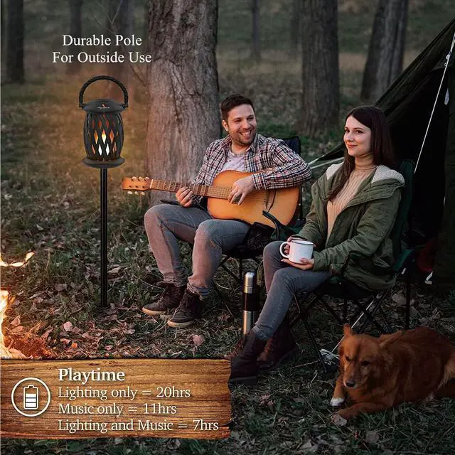 Long Battery And Easy To Pair: Our Bluetooth outdoor speakers can provide up to 11 hours of lighting, 22 hours of music, or 7 hours of both. Its suitable for use with most Bluetooth devices and can be paired with another torch speaker to amplify the sound.