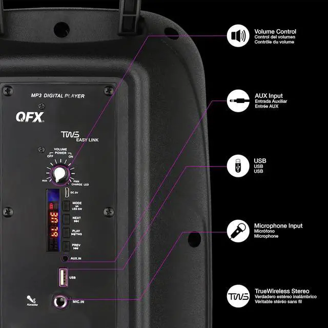 BRING THE BEAT WHEREVER YOU GO - Portable and pretty robust, our QFX speaker's designed for real-world use, from backyard BBQs to beachside bonfires.