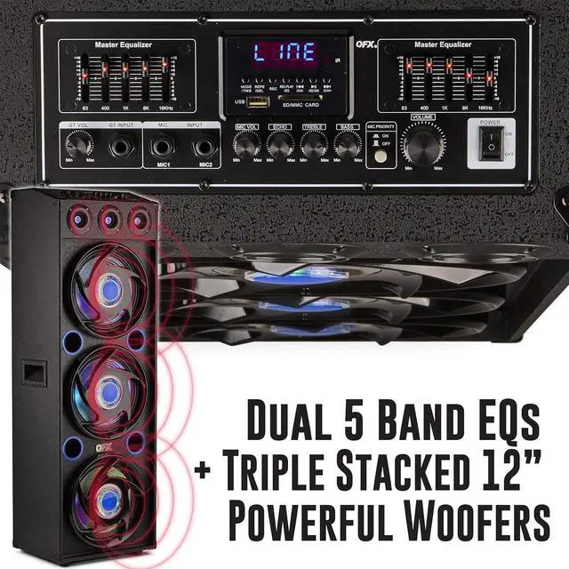 Explosive Sound Quality: This Bluetooth triple speaker features 3 12 woofers, 3 1 tweeters, a 10-band graphic equalizer, a microphone equalizer, microphone echo control, and bass and treble control features for exceptional sound quality.
