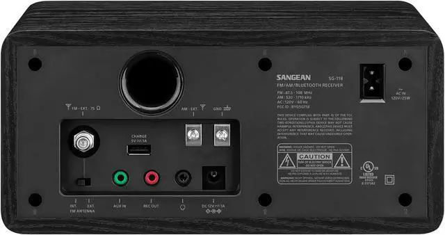 INCLUDED COMPONENTS: Sangean SG-118 AM/FM/Bluetooth Wooden Cabinet Radio with USB phone charging, FM Wire Antenna & Owners Manual.