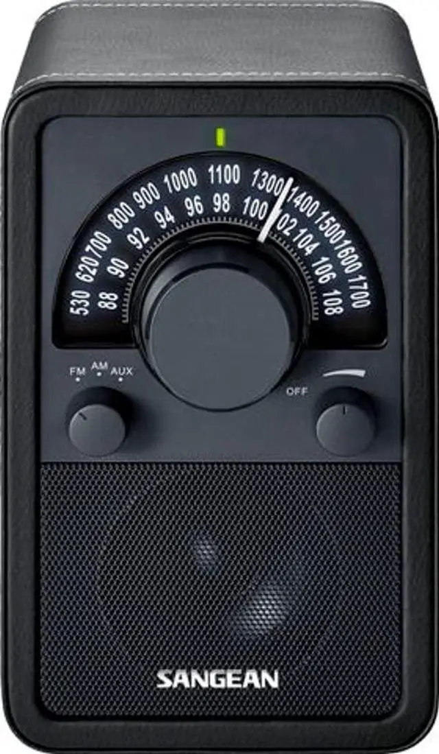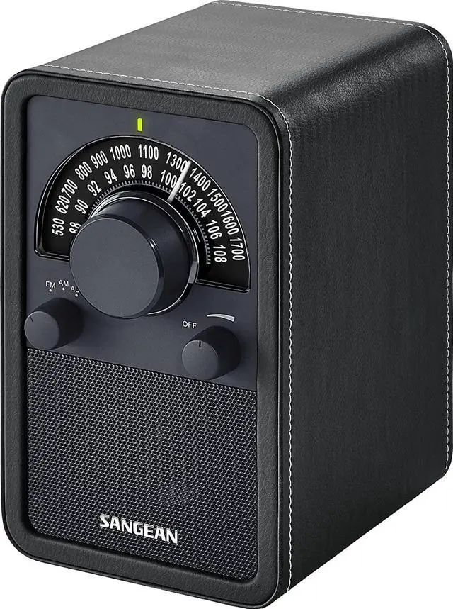 Sangean WR-15BK AM/FM Table Top Wooden Radio, Black Leatherette