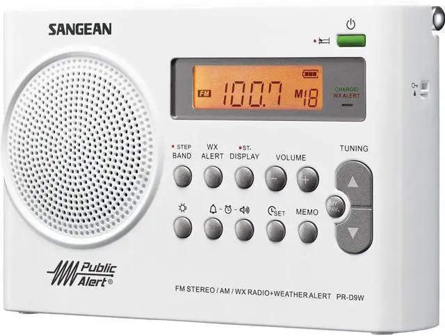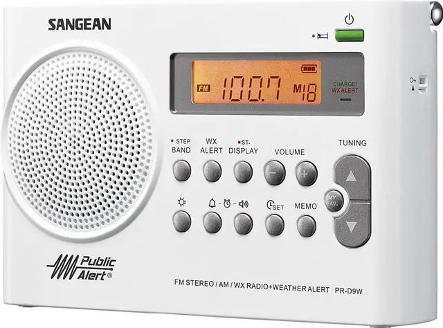 Sangean PR-D9W Portable AM/FM/NOAA Alert Radio with Built-In Battery Charger, White