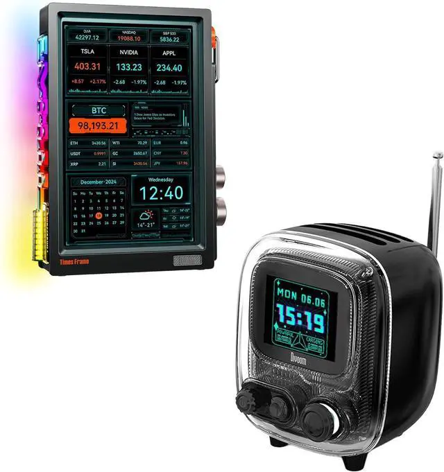 Divoom Transparent IPS Digital Picture FrameThis transparent IPS digital picture frame also works as a sleek digital photo frame and futuristic electronic picture frame, delivering a semi-transparent,richer depth and 3D-like view unlike any traditional display. Beyond displaying memories, it's a lifestyle assistant with customizable clock faces, live weather, finance updates, and milestone reminders that elevate any space.