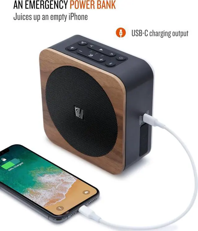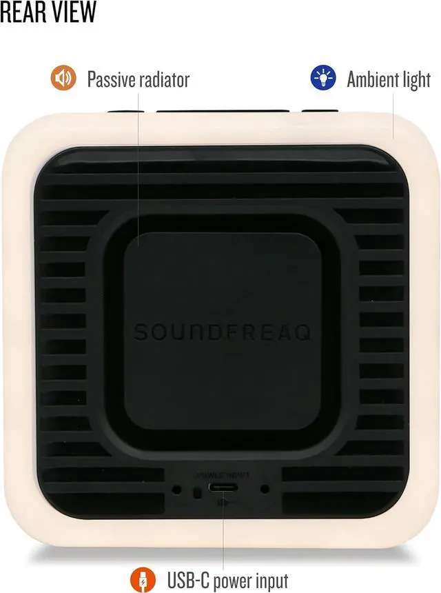 USER-FRIENDLY DESIGN: Simple controls, volume limiter for different room sizes, 30/60/120-minute sleep timer, and hands-free speakerphone with ENC (Environmental Noise Cancellation) technology for clear phone calls. Rear USB-C port for power input with any PD power adapter, and side USB-C charging port for mobile devices