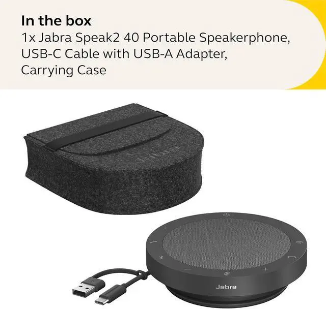 • FUTURE-PROOF AND PORTABLE: Enjoy easy, USB-A or USB-C plug-in connectivity options and a portable design, this Jabra speakerphone is perfect for meetings wherever you are