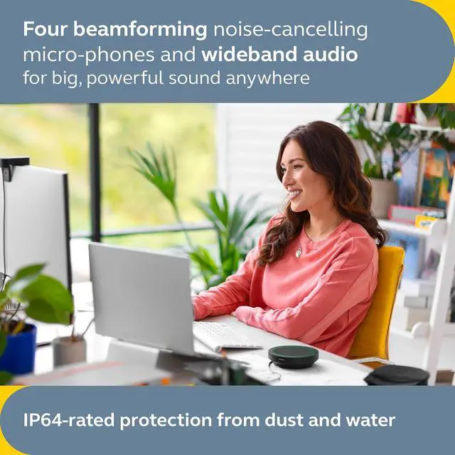 CALLS FOR THE WIN: Whether it's a one-on-one or a team huddle, enjoy clear, professional sound from this portable speaker that makes every meeting productive