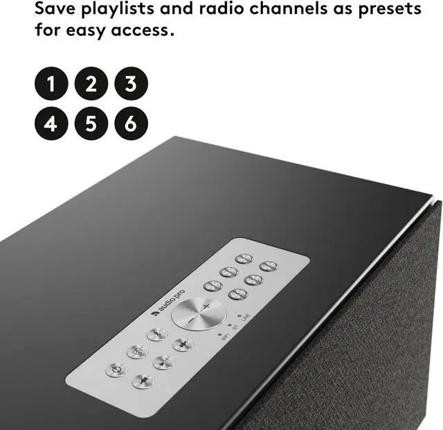 INTUITIVE CONTROLS, PERSONALIZED LISTENING: Easily access your favorite playlists and radio stations with six preset buttons. The user-friendly Audio Pro app provides full control over your portable speaker bluetooth wireless experience.