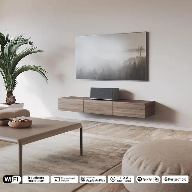 SEAMLESS CONNECTIVITY: Enjoy effortless streaming with AirPlay 2, Google Cast, Tune In Radio and the Audio Pro Multiroom system, allowing you to connect your devices and enjoy high-quality sound throughout your home