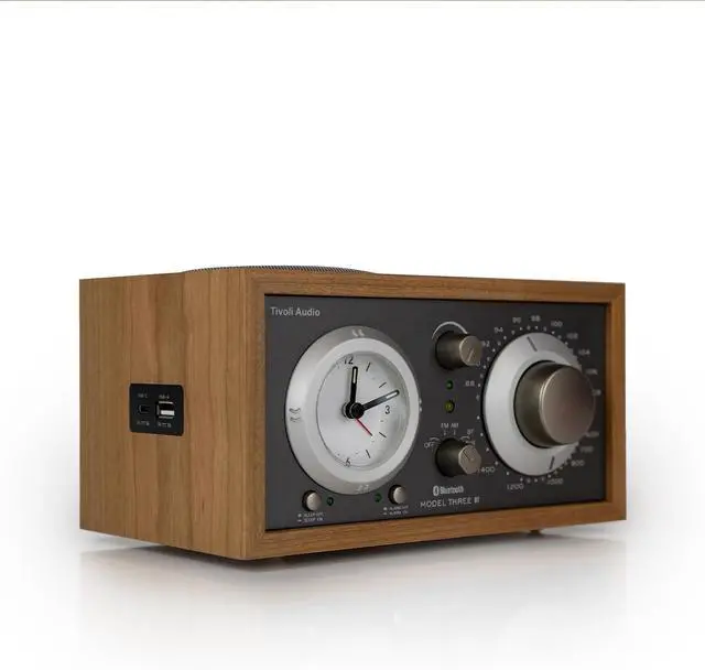 Tivoli Audio Model Three Bluetooth Clock Radio with USB-A & USB-C Charging Ports (Cherry/Metallic Taupe)