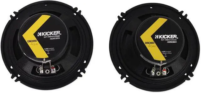 Features of 43DSC6504: Pair Kicker 43DSC6504 DSC650 6.5" 240 Watt 2-Way Car Stereo Speakers 4-Ohm, 240 Watts Peak Power, 60 Watts RMS Power, Polypropylene midwoofer, Acoustic-foam surround, 1/2" Polyethylene-Naphthalate Dome Tweeter, Stamped steel basket,