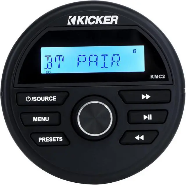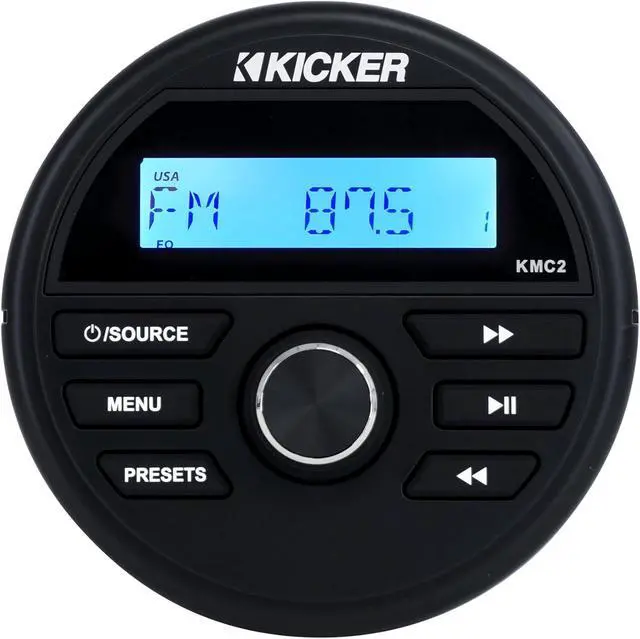 Package Includes: (1) Kicker 46KMC2 Gauge Hole Digital Media Receiver w/Bluetooth/USB For Boat/ATV/UTV. (2) MB Quart NK2-116W 6.5" 120 Watt 2-Way Marine Boat Speakers in White