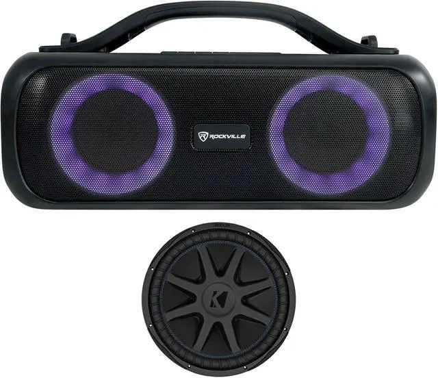 Package Includes: (1) Kicker 44CVX154 Comp VX CVX 15" 2000 Watt Car Subwoofer Sub CVX15-4 44CVX15-4, (1) Rockville Go Party D4 Large Loud Portable LED Party Bluetooth Speaker, Deep Bass