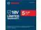 Bosch 18V cordless power tools are covered by a five year limited warranty. For more information, visit manufacturers website