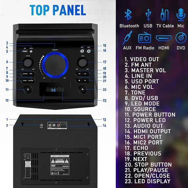 Pyle Model : PKRK270BT PA Bluetooth Audio VIDEO/DVD Speaker SystemKaraoke Vibe Portable Video PA Speaker System with Built-in Multimedia Disc Player, (8 Speaker, 800 Watt)Features:All-in-One Audio & Video Karaoke System