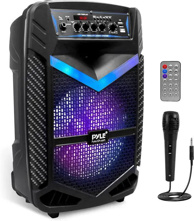 FLASHING LED LIGHTS: Not only does this pa system sound great, but it also looks great lighting up in a variety of color combinations. Great for patio parties, or gatherings at night when a colorful presence is noticeable, ideal as a karaoke speaker