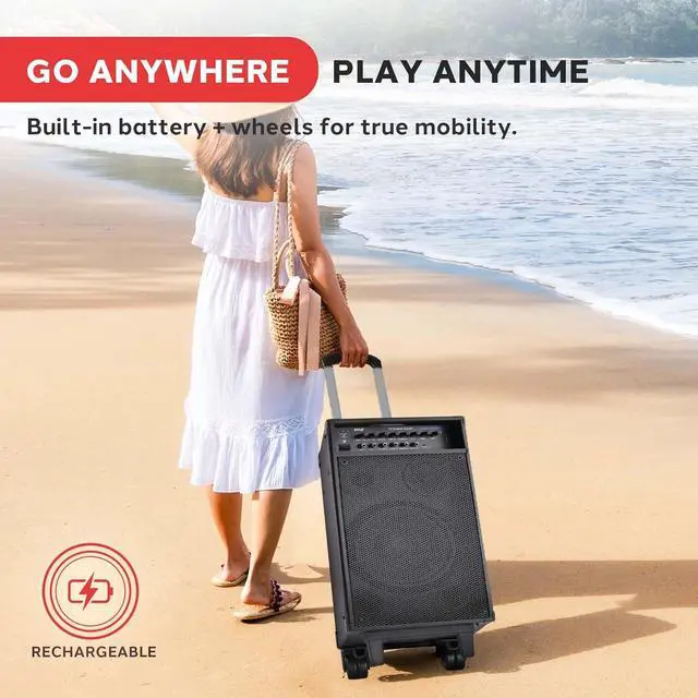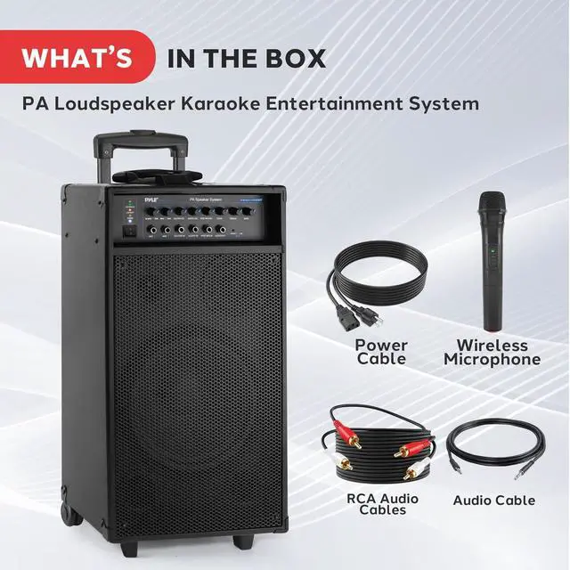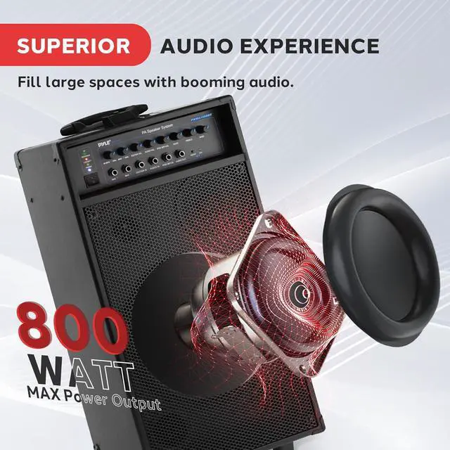 Pyle Outdoor Portable Wireless Bluetooth PA Loud speaker Stereo Sound System with 10 inch Subwoofer, Mid-Range Tweeter, Rechargeable Battery, FM Radio, USB / SD Reader, Microphone, Remote - PWMA1050BT
