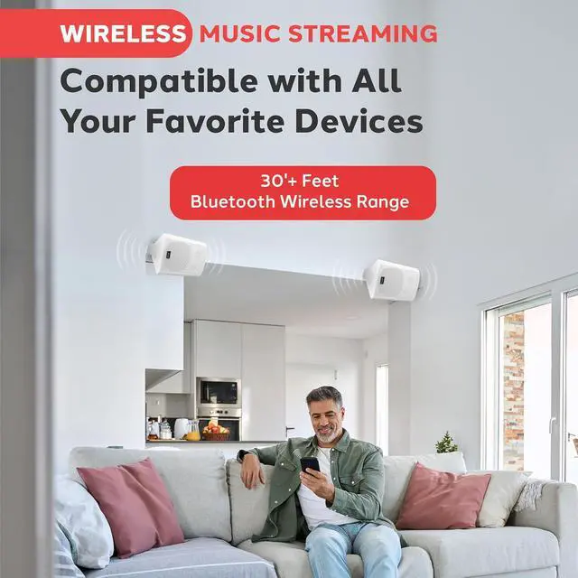 Surround Sound Speakers: Set of 2 daisy chain stereo speakers provides a high-powered wireless performance with a full range of quality audio
