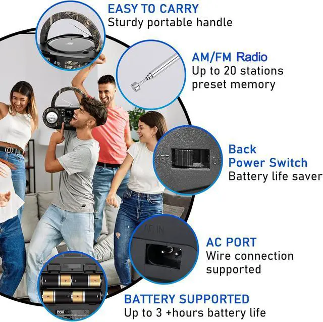 MULTIPLE CONNECTIVITY: Whether you're streaming music from BT devices, playing CD-R/RW discs, rocking out with the digital AM/FM stereo tuner, or connecting your device to the 3.5mm AUX input or USB thumb drives, our cd player boombox is ideal