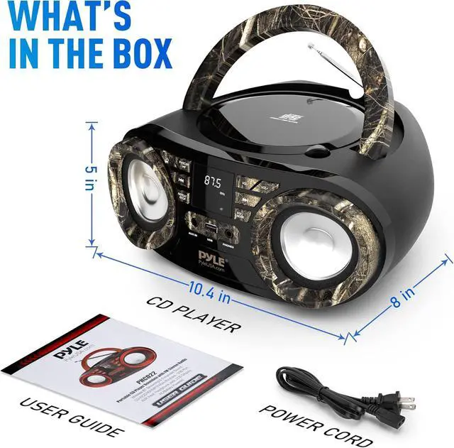HIGH-QUALITY AND STYLISH DESIGN: With its portability, our cd player boombox can be taken anywhere! The AM Radio is also auto search and has 20 stations preset memory, w/ twin stereo speakers and AM/FM Dial. With a real tree design, ideal for all
