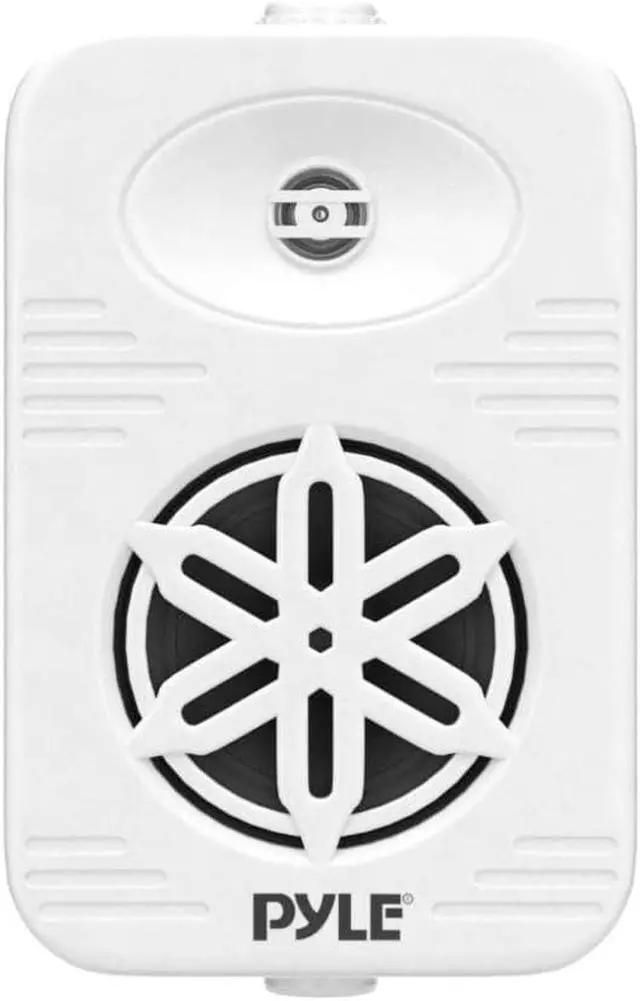 WATERPROOF CONSTRUCTION: speakers outdoors are made with heavy-duty ABS construction and are marine-grade waterproof making them safe to use in places w/ heavy water splashes. Excellent for use on boats/ marine/ decks/ patios/ poolside/ outdoors