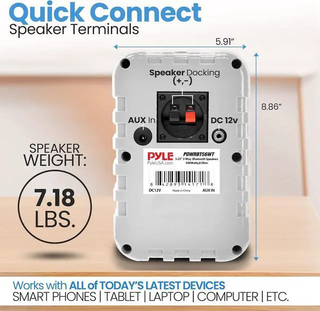 QUICK-CONNECT TERMINALS: The bluetooth indoor and outdoor speaker features a capacitor crossover network that separates 2 channels for a discretely brilliant sound. Connect wires easily using the quick connect / disconnect speaker terminals
