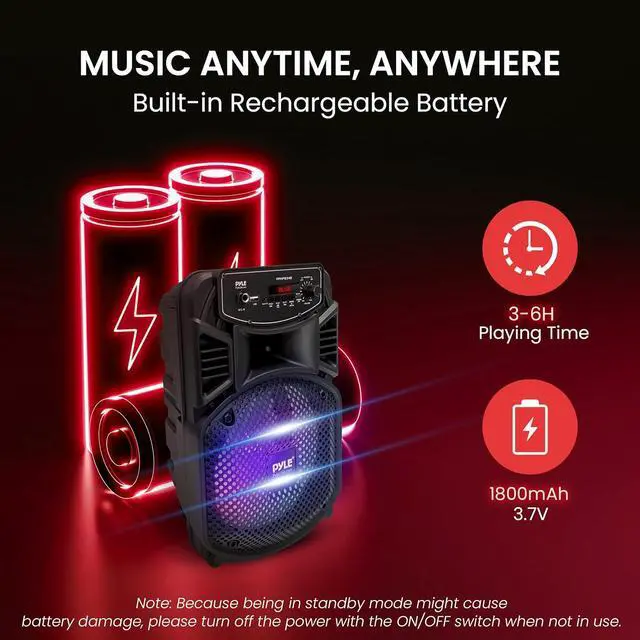 Rechargeable battery: this pyle pa speaker is great for karaoke, stage performances & crowd control. it is fully portable, thanks to its built-in rechargeable battery w/level indicator lights, and extending carry handle so you can take it anywhere