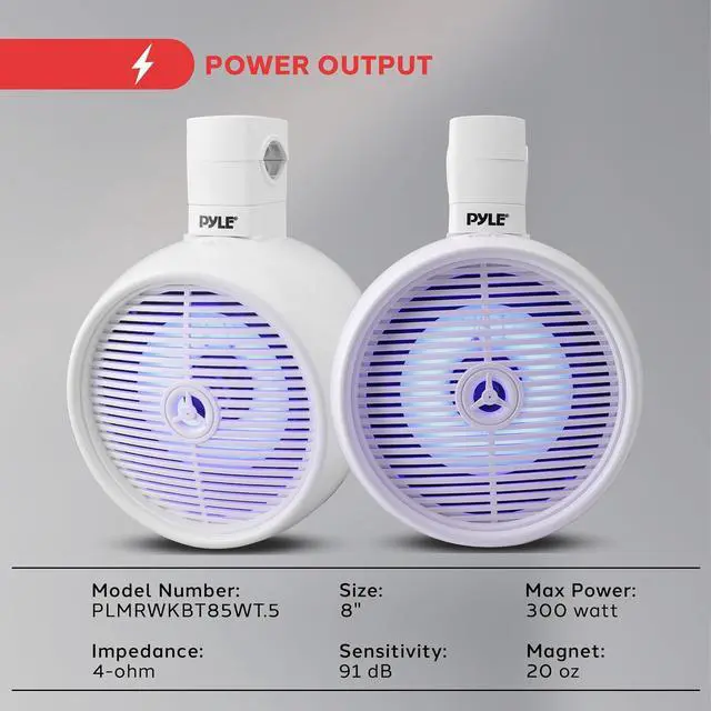 AMPLIFY YOUR OUTDOOR ADVENTURES: Enjoy powerful, high-quality audio with Pyles 300W marine-grade speaker system, perfect for cars, ATVs, UTVs, Jeeps, boats, and more. Includes two 8 two-way speakers to deliver balanced sound on any terrain.