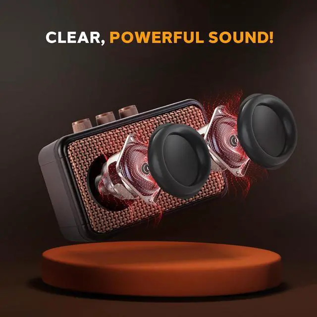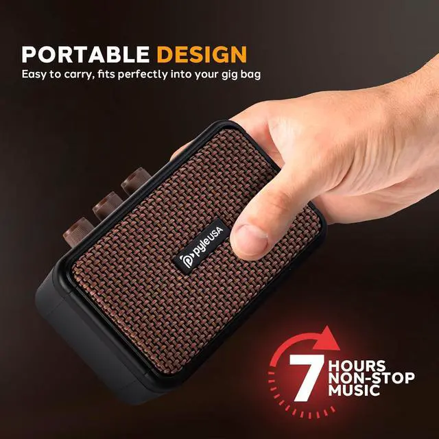 COMPACT SIZE & LIGHTWEIGHT - With dimensions of 4.92" x 2.55" x 3.46", this mini guitar amp is ultra-portable and easy to store. Its small design makes it perfect for desktop practice, bedroom sessions, or outdoor jams, providing portability without taking up space.