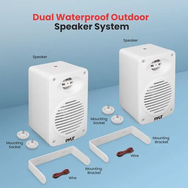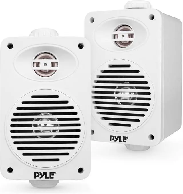 WATERPROOF CONSTRUCTION: Pyle speakers outdoors are made with heavy-duty ABS construction and are marine-grade waterproof making them safe to use in places w/ heavy water splashes. Excellent for use on boats/ marine/ decks/ patios/ poolside/ outdoors