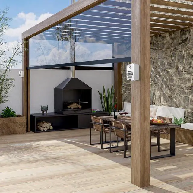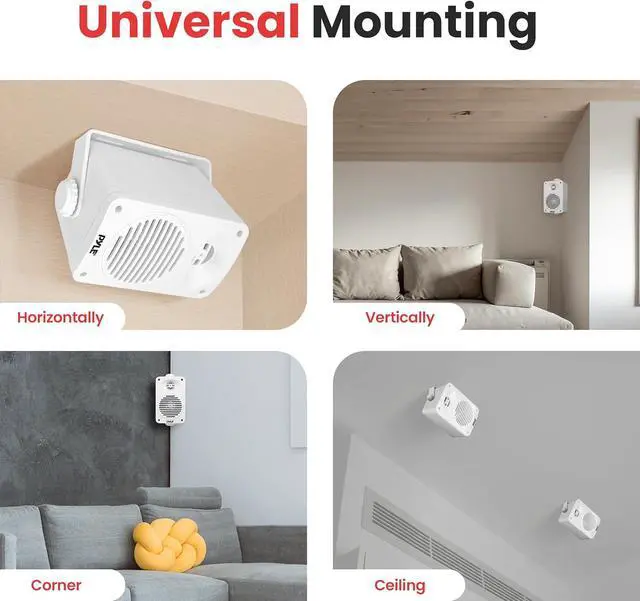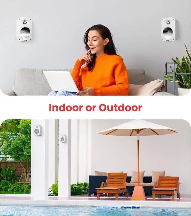 FULL RANGE AUDIO: This indoor outdoor patio speaker system features 200-watt peak power / 100W RMS & equipped w/ 3.5" aluminum injection cones subwoofer, 1.75" midrange, & 1/2" high compliance polymer tweeter for full range stereo sound reproduction