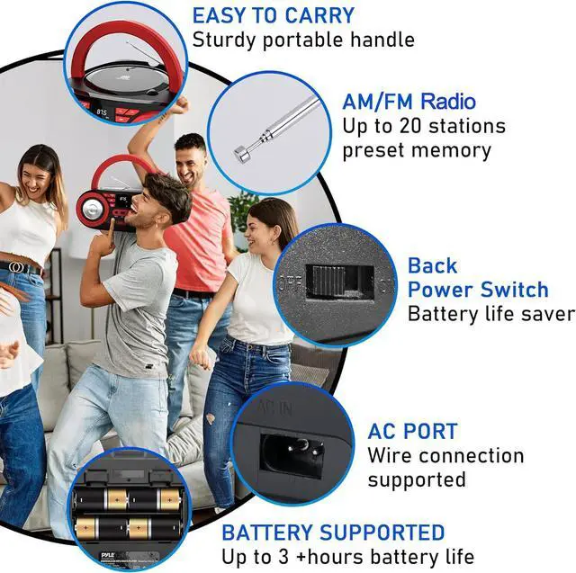 PORTABLE AM/FM STEREO RADIO: Our CD Player Boombox compact size and lightweight design as it is only 10.4 x 8 x 5 inches allows you to play and listen to your favorite music even when you are outdoors with your friends or family