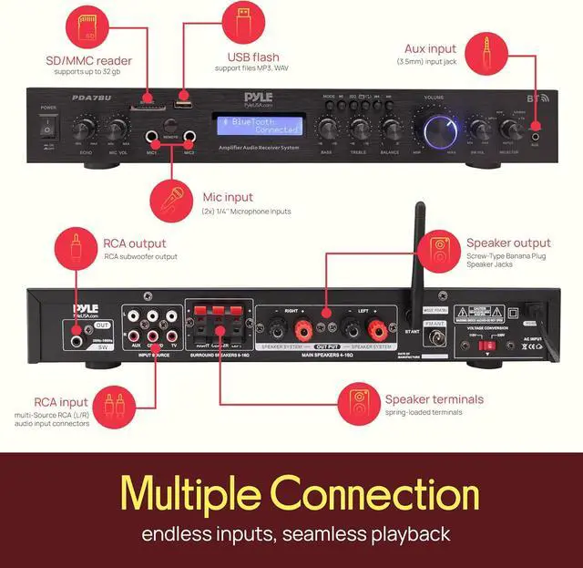 WHAT'S IN THE BOX: The audio receiver comes with everything you need to get started. This exclusive bundle from Pyle features our top of the line amplifier receiver, wireless remote control, detachable hardware rack mounts and FM antenna