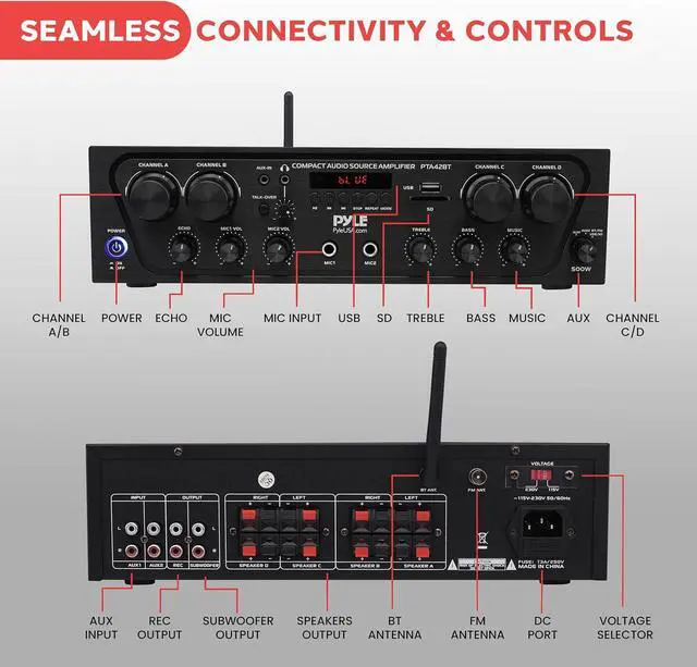 500 WATT POWER: The Pyle 4-channel Bluetooth home audio amplifier is perfect for your PA and home theater entertainment. It gives you 500W peak power which can be used for multi speakers w/ 4-8 ohms impedance allowing you to enjoy high quality audio