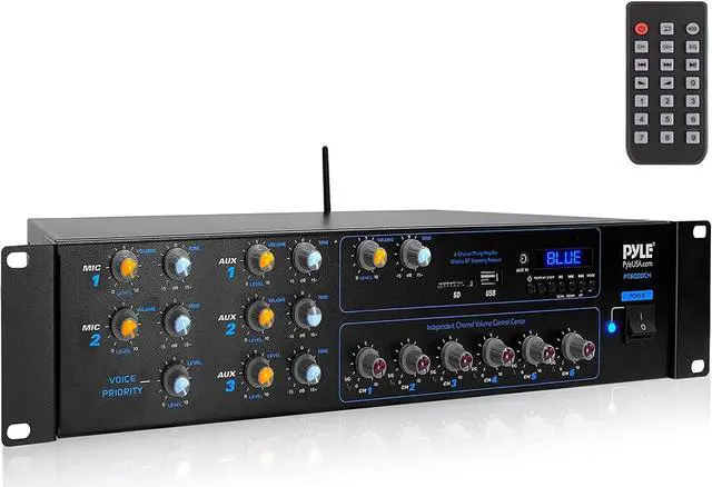 Pyle Rackmount Bluetooth Power Amplifier - 4200W Max Power - 6 Channel Audio Receiver w/ Mixer, Multi-Channel Switching, Discreet Mic Tone and Vol Control for Karaoke or PA, USB-A MP3 Player