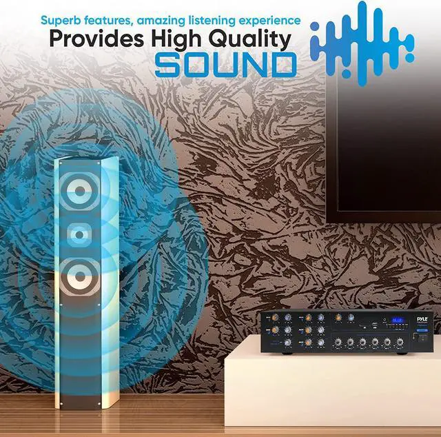 • BLUETOOTH CONNECTIVITY: This professional integrated stereo receiver is equipped w/ Bluetooth wireless connectivity. It works with todays latest devices including smart phones, tablets, iPhone or computer. Hassle-free pairing w/ 30ft Range