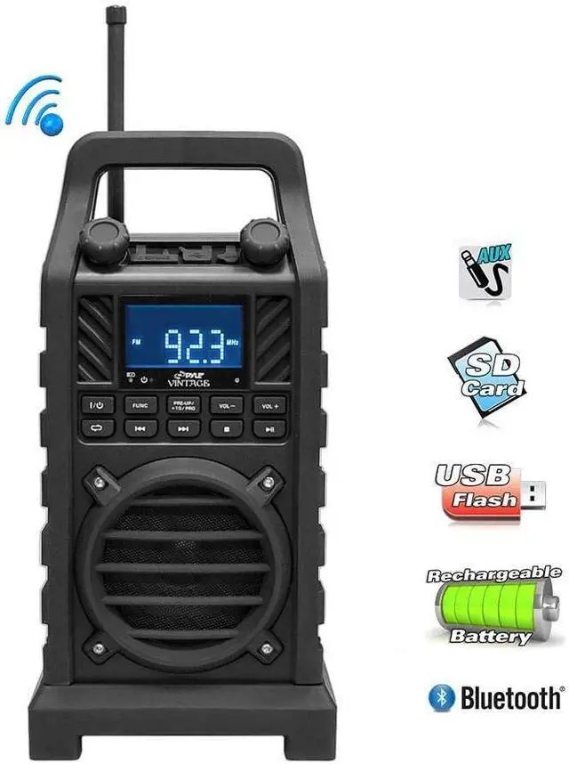 USB Flash & SD Memory Card Readers - USB Slot Can Also Charge Your Device - FM Radio with 20 Presets