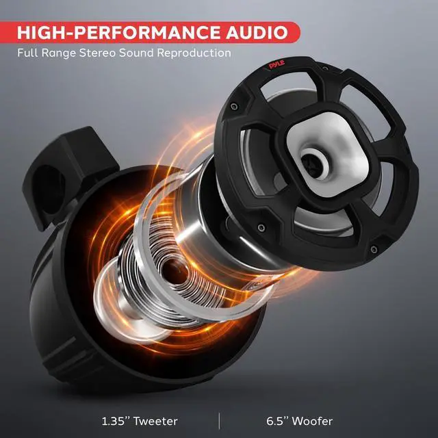 SLEEK DURABLE BUILD: Designed with a low-profile, machine-molded housing, these speakers add a clean, professional finish to your setup. The modern construction blends seamlessly with custom builds, enhancing the look of your powersport vehicle.