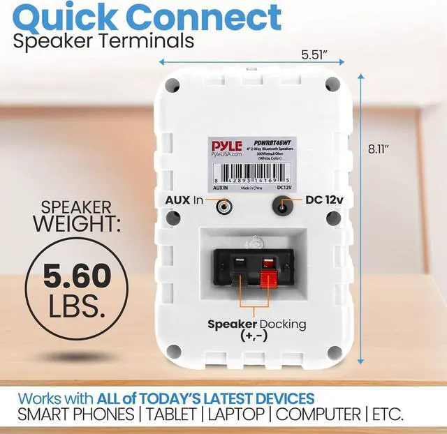 QUICK-CONNECT TERMINALS: The bluetooth indoor and outdoor speaker features a capacitor crossover network that separates 2 channels for a discretely brilliant sound. Connect wires easily using the quick connect / disconnect speaker terminals